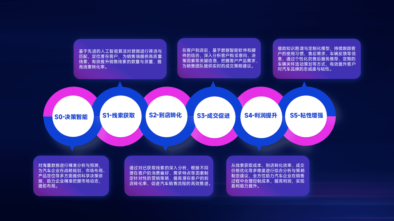 通过拓宽潜在客户来源、、、、优化线索分配并提高到店转化率,,,,以增强销售效率。。。。同时,,利用线索数据不断优化分析模型,,有效提升转化率,,扩大营销影响力。。。